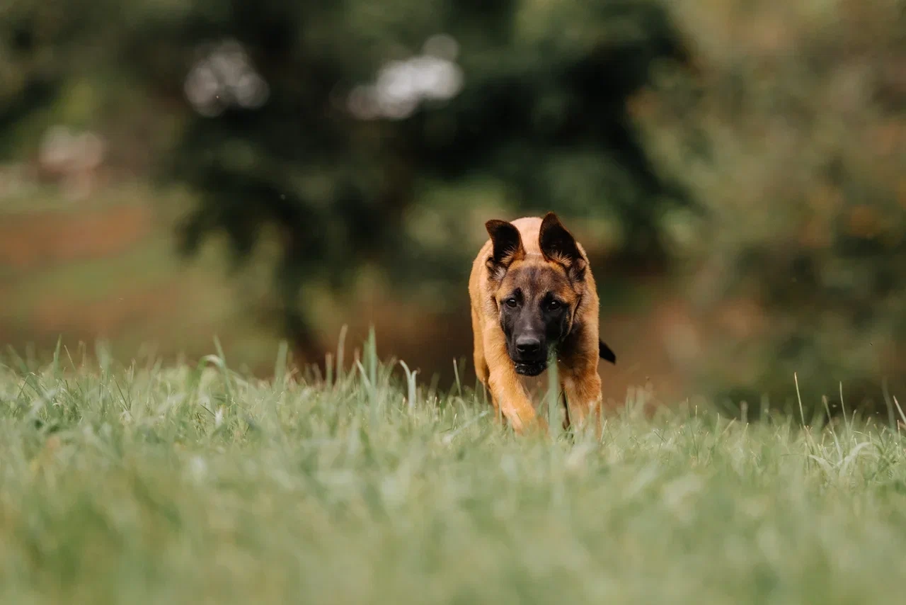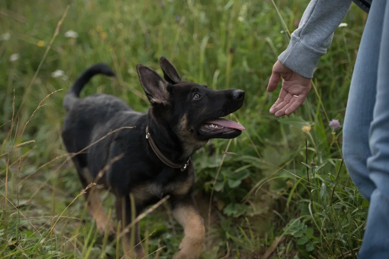- Щенок следует за проводником без поводка и без дополнительной стимуляции со стороны владельца.