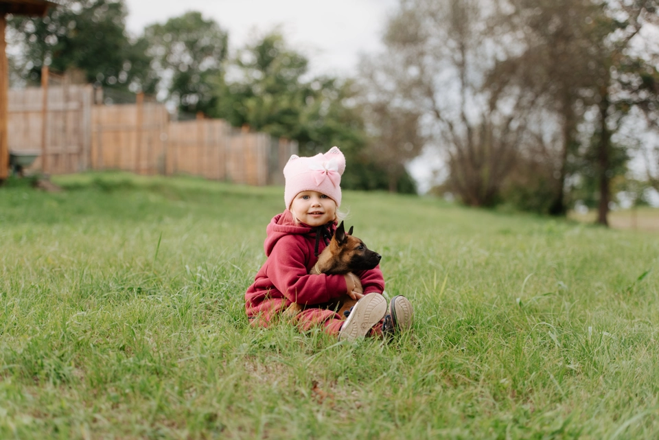 - Щенок находится на свободе (без поводка) под присмотром владельца.
